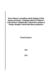 Sammon, Niamh (2023) Boris Johnson’s journalism and the shaping of elite opinion on Europe: a framing analysis of Johnson’s work and how it shaped elite Conservative opinion on Europe, through a critical elite theory perspective. PhD thesis, Dublin City University.