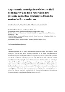 A harmonic study of electric field nonlinearity and field reversal in collisionless capacitive discharges driven by sawtooth-like waveforms.