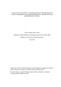 Cunnane, Triona (2024) A Multi-Site Case Study: An Exploration of the Influence of School Leadership on Teacher Professional Learning in Four Irish Primary Schools. Doctor of Education thesis, Dublin City University.