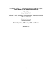 Raftery, Aidan (2024) Investigating the Role of a Community of Practice in Supporting Primary School Principals to Enact Inclusive School Leadership. Doctor of Education thesis, Dublin City University.