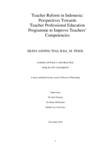 Tias, Silfia Asning (2024) Teacher Reform in Indonesia: Perspectives towards teacher professional education programme to improve teachers’ competencies. PhD thesis, Dublin City University.