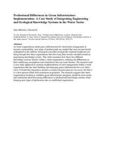 Professional differences in green infrastructure implementation: A case study of integrating engineering and ecological knowledge systems in the water sector.