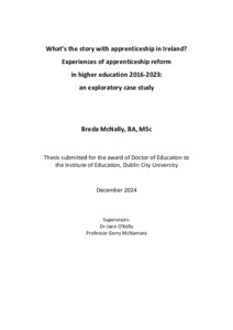 McNally, Breda (2025) What’s the story with apprenticeship in Ireland? Experiences of apprenticeship reform in higher education 2016-2023: An exploratory case study. Doctor of Education thesis, Dublin City University.