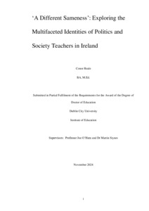 Reale, Conor (2024) 'A Different Sameness’: Exploring the multifaceted identities of politics and society teachers in Ireland. Doctor of Education thesis, Dublin City University.