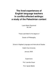 English language instruction is a priority for low, middle and high income countries. English unlocks educational and occupational possibilities, and is the global lingua franca par excellence. In conflict and post-conflict settings, its utility goes beyond social and economic mobility; English can arguably act as a neutral, politically disengaged alternative to languages associated with a destabilising threat. Given the international demand, English teachers regularly embark on short and long term experiences to teach, train and develop curricula in situations of recent or ongoing conflict. As very little is known about the impact of the sociopolitical environment on these educators, this study investigates the lived experiences of English language teachers in conflict-affected settings. Using hermeneutic phenomenology (or lived experience research) as a theoretical and applied methodology, this research focuses on the experiences of educators who taught English abroad to adult learners in the occupied Palestinian territory (oPt), specifically East Jerusalem and the West Bank. The teachers were mobilised through international non-governmental organisations (INGOs) and government-affiliated educational diplomacy initiatives. Phenomenological (or open-unstructured) interviews were conducted and the resulting data was analysed iteratively, then organised into thematic categories for coherence. The research explores the role of the English language in the Palestinian context and the act of teaching English under occupation, in addition to foreign language education against the backdrop of ethno-national conflict. While the language teachers’ identities and political views emerged as central to their experiences, a number of other findings