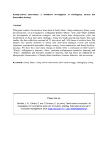 Family-driven innovation: A multilevel investigation of contingency factors for innovation strategy.