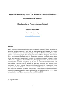 Olar, Roman-Gabriel and (2025) Autocratic Revolving Doors: The Return of Authoritarian Elites to Democratic Cabinets. Perspectives on Politics . ISSN 1537-5927