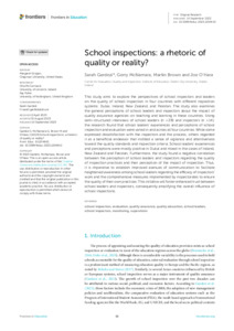This study aims to explore the perspectives of school inspectors and leaders on the quality of school inspection in four countries with different inspection systems: Dubai, Ireland, New Zealand, and Pakistan. The study also examines the general perceptions of school leaders and inspectors about the impact of quality assurance agencies on teaching and learning in these countries. Using semi-structured interviews of school leaders (n = 28) and inspectors (n = 14), the research found that school leaders’ experiences and perceptions of school inspection and evaluation were varied in and across all four countries. While some