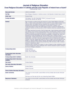 | Uncontrolled Keywords: | Religious Education; Teachers; Catholic schools; Ireland |