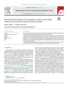 How school ethos influences the integration of newly arrived migrant students into second level schools in Ireland and Malta.