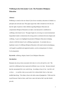 Wellbeing in the Irish Junior Cycle: the potential of Religious Education.