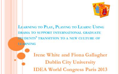 Irene, White and White, Irene and Gallagher (2013) Learning to Play, Playing to Learn: Using drama to support international graduate students' transition to a new culture of learning. In: IDEA World Congress, 8-13 July, 2013, Paris Diderot University, Paris, France.