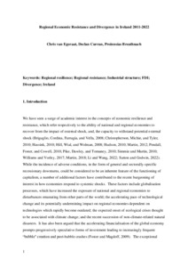| Uncontrolled Keywords: | Regional resilience; Regional resistance; Industrial structure; FDI; Divergence; Ireland |