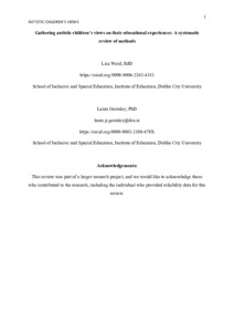 Gathering autistic children’s views on their educational experiences: A systematic review of methods.