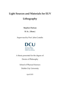 | Uncontrolled Keywords: | Extreme Ultraviolet Lithography, EUVL, EUV Sources, Ultrafast Spectroscopy |