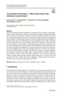 “Covid made me think about…” What really matters in RE: a European research project., 72