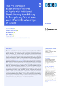 The Pre-transition Experiences of Parents of Pupils with Additional Needs Moving from Primary to Post-primary School in an Area of Social Disadvantage in Ireland.