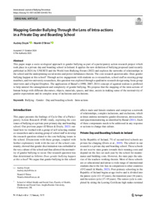 This paper maps a socio-ecological approach to gender bullying as part of a participatory action research project which took place in a private day and boarding school in Ireland. It applies the new defnition of bullying proposed (and recently published in 2024) by UNESCO and the World Anti-Bullying Forum (2022) and explores the networks of relationships in the school and the underpinning social norms and power imbalances therein. The core research question asks: Does gender bullying happen at this school? Through active engagement with students as co-researchers, school staff as steering group members, and two university researchers, this question was explored through a qualitative research design using focus group interviews and a Digital Dropbox. The application of Barad’s (1998; 2007; 2011) concept of agential realism is proffered