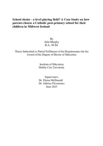Murphy, Jude (2025) School choice - a level playing field? A Case Study on how parents choose a Catholic post-primary school for their children in Midwest Ireland. Doctor of Education thesis, Dublin City University.