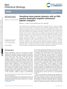 Visualizing stress granule dynamics with an RNA guanine quadruplex targeted ruthenium(II) peptide conjugate.