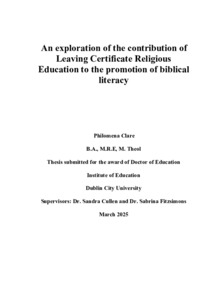 Clare, Philomena (2025) An exploration of the contribution of Leaving Certificate Religious Education to the promotion of biblical literacy. Doctor of Education thesis, Dublin City University.