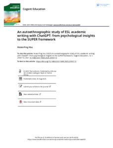 An autoethnographic study of ESL academic writing with ChatGPT: from psychological insights to the SUPER framework.