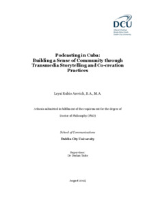 This research examines podcasting in Cuba during the period 2018-2024, offering an empirical study into the development and evolution of the medium within the context of the Caribbean nation. It explores how podcasting fosters the experience of community through transmedia storytelling and co-creation practices in Cuba. Podcasting has emerged as an unregulated medium within a media landscape shaped by the narrative of the Revolution since 1959, functioning ‘as an element of the political system, legitimised by the normative discourse’ (Sosa Valcárcel, 2021, p. 25). The study traces the evolution of the Cuban podcasting landscape over six years, during which the country’s sociopolitical conditions influenced the emergence, consolidation, and subsequent dispersal of the podcasting movement. Drawing on analytical listening of 85 podcast episodes, 27 semi-structured interviews with 32 podcasting media practitioners, and two focus groups involving ten podcast listeners, the research examines how communicative practices in Cuban podcasting contribute to community-building. Grounded in a conceptual framework centred on community, transmedia storytelling, and co-creation, the study identifies podcasting communities as multidirectional networks of interactions, comprising podcaster-to-listener (top-down), listener-to-podcaster (bottom-up), and listener-to-listener (horizontal)