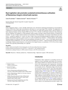bursts improved biomass (cell dry weight (CDW) titre from 1.75 to 4.95 g/L in a 96-h batch cultivation. These bioreactor process conditions were applied to a semicontinuous culture strategy to produce similar biomass density at a dilution rate of 0.02 h−1 for up to 10 days without washout over the duration of the fermentation. An increase in the dilution rate above 0.02 h−1 resulted in washout of L. edodes over time. Using a richer growth medium through the addition of malt extract, peptone, and molasses allowed L. edodes to grow to 4.7 g/L at a dilution rate of 0.025 h−1 without washout. The maximum biomass productivity (396 mg CDW/h) of the semicontinuous cultivation (D=0.02 h−1) was 1.9-fold higher than the batch cultivation 206 mg CDW/hour. Use of the richer growth medium at D=0.025 h−1 improved biomass productivity further