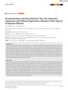 Personalization and Elite Rhetoric: How the Autocrat's Popularity and Political Repression Influence Policy Speech of Regime Officials.