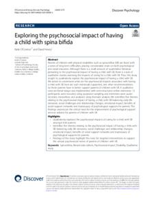 O’Connor, Katie and Hevey, David (2025) Exploring the psychosocial impact of having a child with spina bifida. Discover Psychology, 5 (75). ISSN 2731-4537