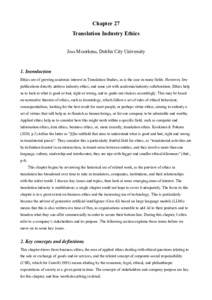 Ethics are of growing academic interest in Translation Studies but are rarely reviewed across the translation industry. This chapter surveys related work, as the purview of ethics in translation broadens to include all stakeholders, and examines key issues, focusing on business ethics and the increasing use of technology. It looks at the effect on organisations’ stakeholders and their stated purpose as they scramble to add AI to their products and to broaden what they can offer commercially in order to secure their bottom line. Finally, it considers the potential effects of incoming legislation and the potential for ethics as a business model.