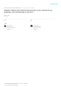 Border Carbon Adjustment Mechanisms: Legal and Political Barriers, and the Reform of the WTO.