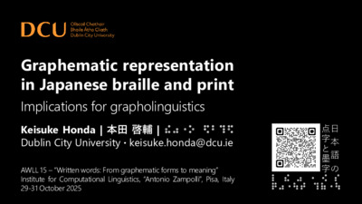 | Uncontrolled Keywords: | Braille; Writing systems; Grapholinguistics |