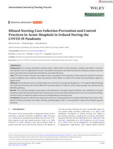 Missed Nursing Care Infection Prevention and Control Practices in Acute Hospitals in Ireland During the COVID-19 Pandemic.