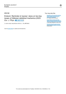 | Uncontrolled Keywords: | Jaynes, Gibbs, statistical mechanics, thermodynamics, entropy, Liouville |
