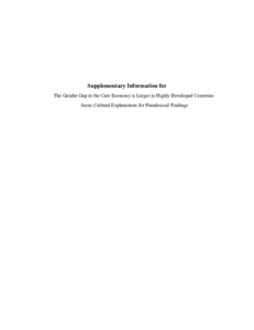 The Gender Gap in the Care Economy is Larger in Highly Developed Countries: Socio-Cultural Explanations for Paradoxical Findings.