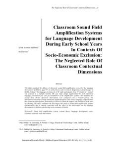 Classroom Sound Field Amplification Systems for Language Development During Early School Years. In Contexts Of Socio-Economic Exclusion: The Neglected Role Of Classroom Contextual Dimensions.