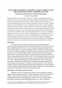 academic year. The research team (and research Mathematicians) will collaborate with the schools and support the teachers to reflect on and reform their teaching by engaging in school-based Lesson Study. This paper provides an outline of the project and initial findings