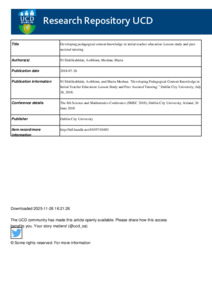 Developing pedagogical content knowledge in initial teacher education: Lesson study and peer assisted tutoring.