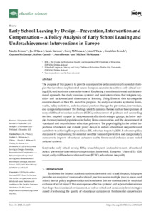Early School Leaving by Design—Prevention, Intervention and Compensation—A Policy Analysis of Early School Leaving and Underachievement Interventions in Europe.