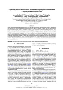 Exploring text classification for enhancing digital game-based language learning for Irish.