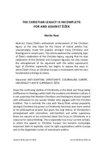 The Christian Legacy is Incomplete: For and Against Žižek.