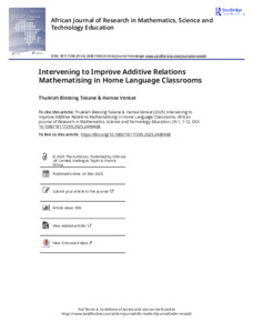 Intervening to Improve Additive Relations Mathematising in Home Language Classrooms.