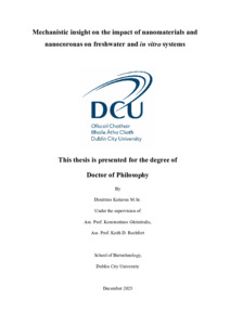 Kakavas, Dimitrios (2025) Mechanistic insight on the impact of nanomaterials and nanocoronas on freshwater and in vitro systems. PhD thesis, Dublin City University.