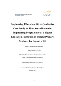 O'Gorman, Louise (2026) Engineering Education 5.0: A Qualitative Case Study on How Accreditation in Engineering Programmes at a Higher Education Institution in Ireland Prepare Students for Industry 5.0. Doctor of Education thesis, Dublin City University.