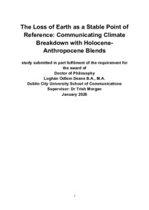 Odlum Deane, Lughan (2026) The Loss of Earth as a Stable Point of Reference: Communicating Climate Breakdown with Holocene-Anthropocene Blends. PhD thesis, Dublin City University.