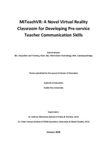 Boylan, Patrick (2026) MiTeachVR: A Novel Virtual Reality Classroom for Developing Pre-service Teacher Communication Skills. Doctor of Education thesis, Dublin City University.