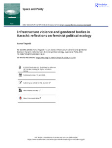 Infrastructure violence and gendered bodies in Karachi: reflections on feminist political ecology.