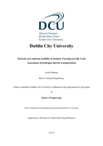 Sabernia, Sevda (2026) Towards Zero Emission Mobility in Ireland: Focusing on Life Cycle Assessment of Hydrogen Fuel for Transportation. Master of Engineering thesis, Dublin City University.