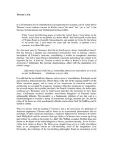 This essay appeared in the exhibition catalogue that was produced to accompany the exhibition Huts at the Dougas Hyde Gallery, Trinity College Dublin in 2005. The essay is based upon a lecture that was given at the Gallery, and provides an account of the abiding sense of controversy that necessarily is attached to Thoreau's Walden.